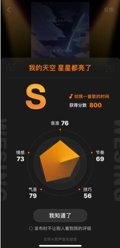 小编从专业人士那里了解到,全民K歌的多维打分功能可以实时捕捉用户在唱歌途中出现的颤音、滑音,并通过计算、分解,与原唱技巧模板进行对比,从而更加合理地对用户的歌唱技巧进行评分,在显示评分的同时,也会展示如“节奏、音准接近完美”之类的评语,有趣的同时也不失人性化。